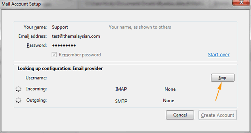 7) Thunderbird will try to detect your settings, wait for it to complete