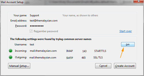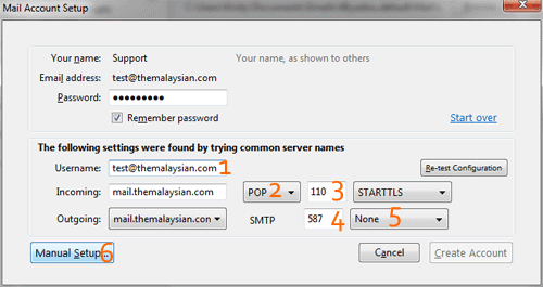 - Outgoing Mailserver: mail.yourdomain.com (eg: mail.themalaysian.com)